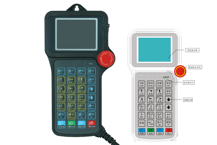 单轴注塑机械手系统应用为Ezpay芯片系列注塑机械手控制系统HC-S1,手控器操作面板如下图:
