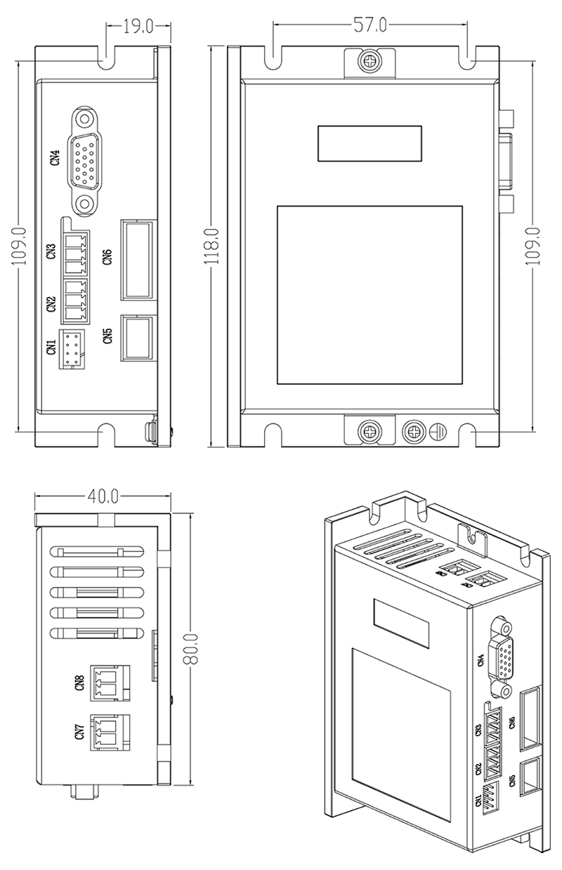 低压伺服驱动器尺寸图: