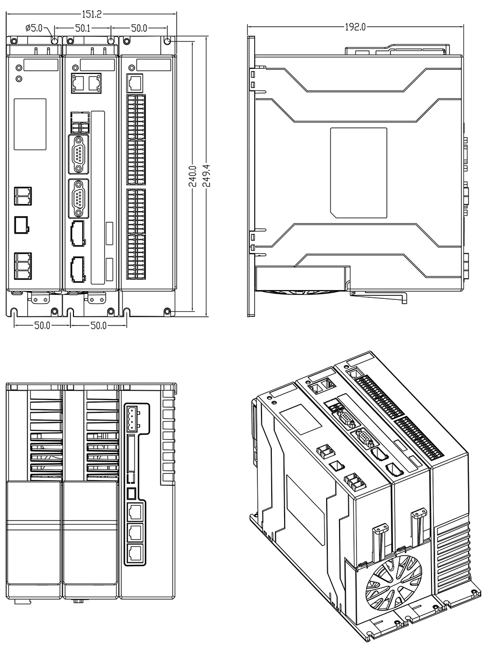 3)省略号处单元模块相同,系统轴数可选择2轴、3轴、4轴、5轴、6轴、7轴、8轴。端口连接方式相同。